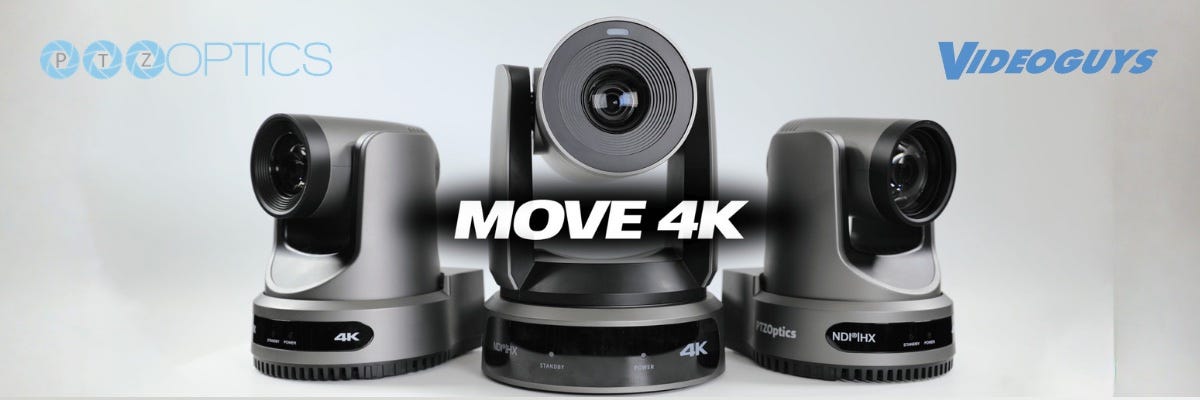 The PTZOptics Move 4K delivers stunning 4K at 60fps video with built-in auto-tracking for smarter, operator-free production. Featuring SDI, HDMI, USB, and IP outputs with native NDI® HX3, PoE+ support, low-light performance, and a built-in tally light, it’s designed for maximum flexibility. With 12x, 20x, or 30x optical zoom and advanced Presenter Lock™ tracking from up to 300 feet away, the Move 4K fits seamlessly into any live production workflow. Click here to learn more!