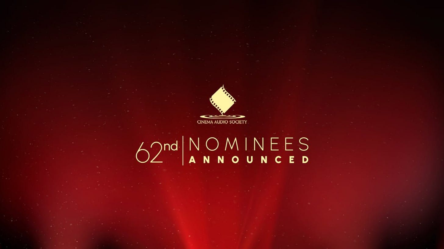 Cinema Audio Society Announces 62nd CAS Awards Nominations Honoring Excellence in Sound Mixing